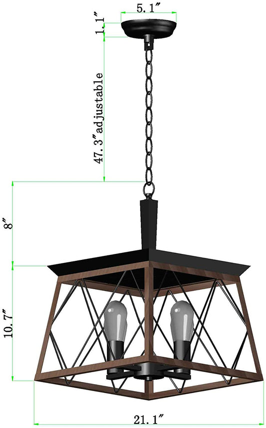 Farmhouse Rustic Chandeliers,Antique Geometric Industrial Hanging Light Bronze 4 Lights for Dining Room Kitchen Island Entryway Foyer Restaurant UL Listed