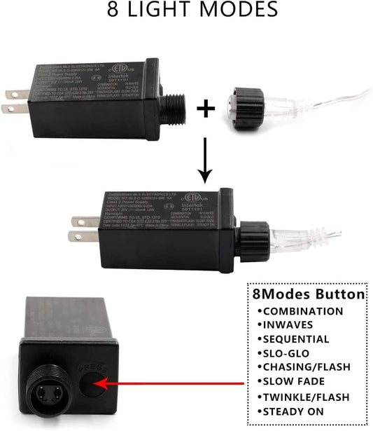 String Lights LED Multicolor Christmas Light, String Twinkle Light Tree Decor Plug in for Inoor Outdoor with 8 Modes,Waterproof Outdoor Lights for Christmas Decorations